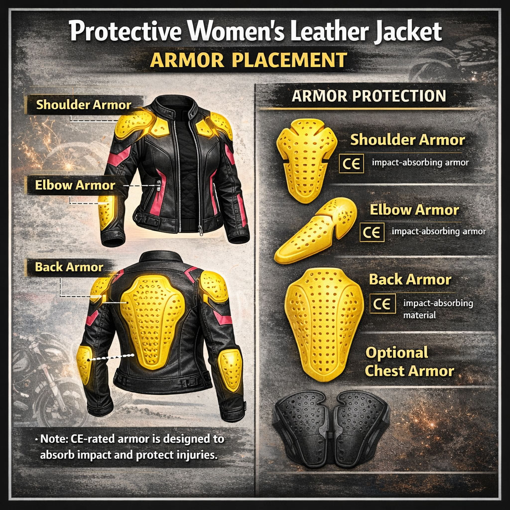 This is why protective women's motorcycle jackets include armor inserts in critical areas.